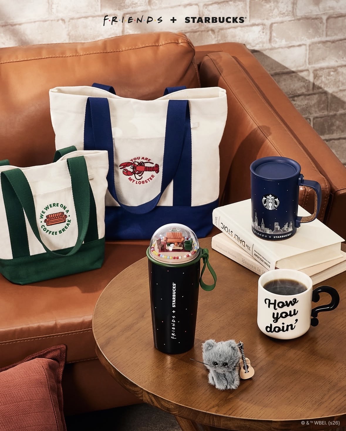 FRIENDSの象徴的なモチーフであるロブスター(“YOU ARE MY LOBSTER”)や、コーヒーソファを思わせるデザインが落とし込まれ、ファン心をくすぐります。