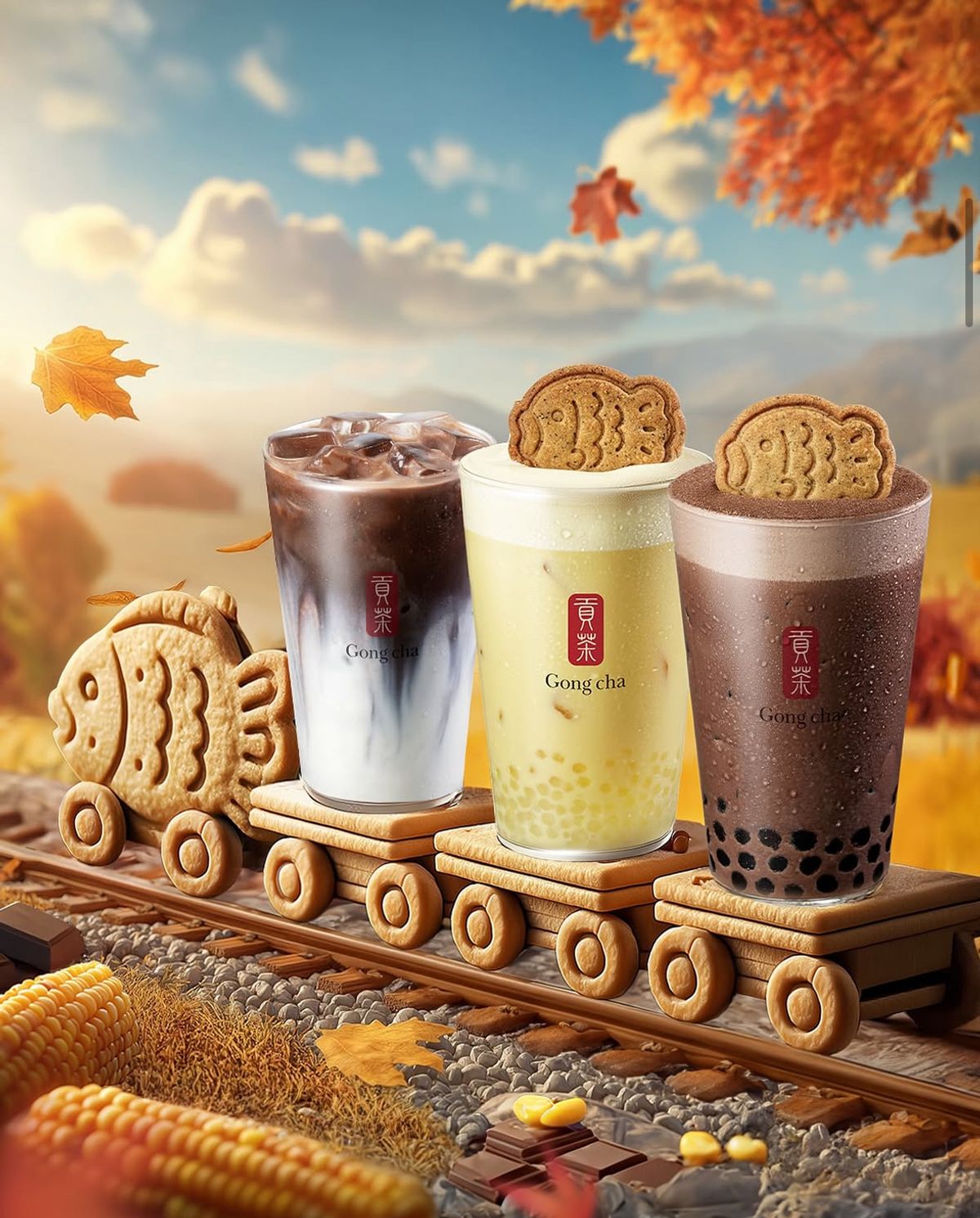 韓国ゴンチャでたい焼き風ドリンク「붕어다냥」が発売。コーン、チョコ、アールグレイの3種。